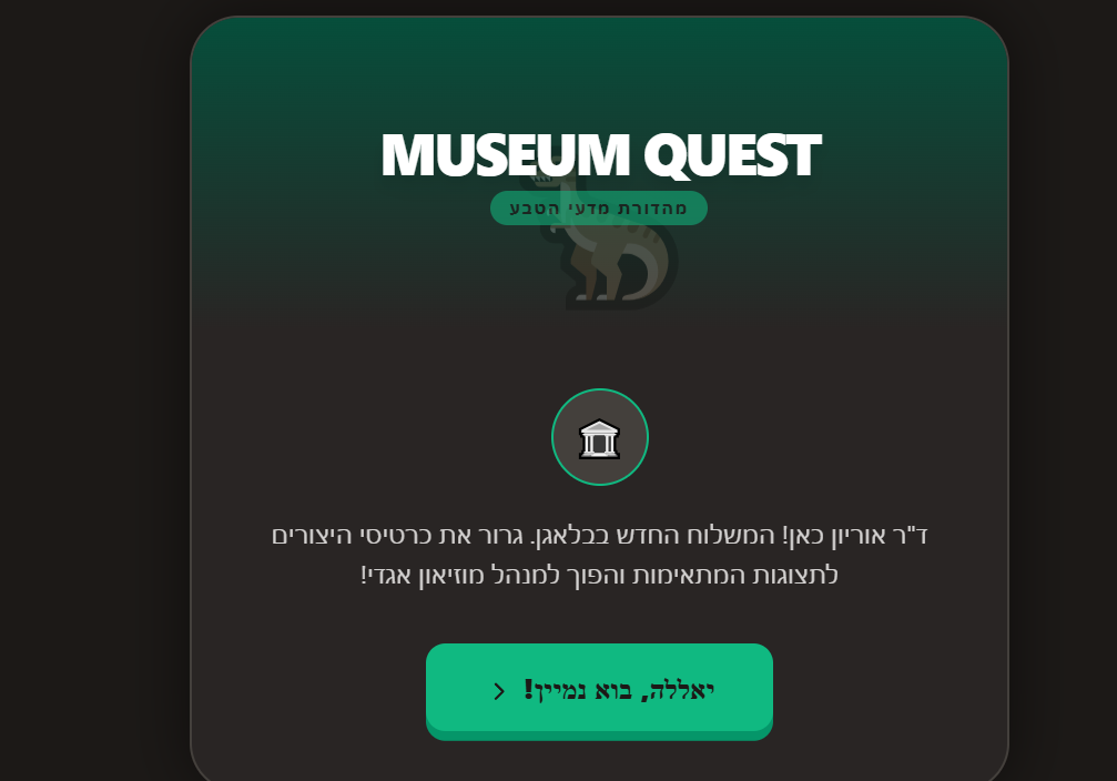 מוכן? האורות בלובי נדלקים, בני הדינוזאור מחייך (עד כמה שדינוזאור יכול), ואנחנו יוצאים לדרך!