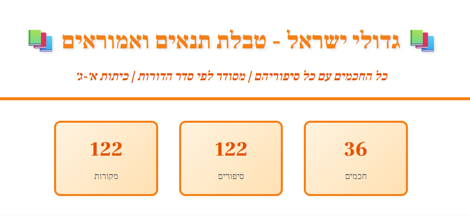 טבלה מפתח עצומה לסיפורים על התנאים והאמוראים – חלק ב