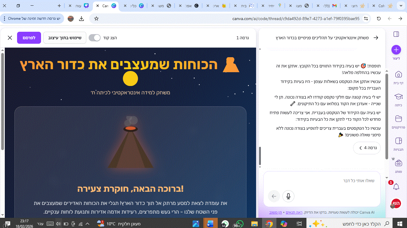 משחק אינטראקטיבי , לסיכום/ פתיחה של ידע כללי על הנושא של תהליכים פנימיים בכדור הארץ המשנים ומעצבים את פני הנוף . מורכב מחידון אמריקאי ומאנקדוטות של הידעת על כל שאלה לאחר מתן התשובה.