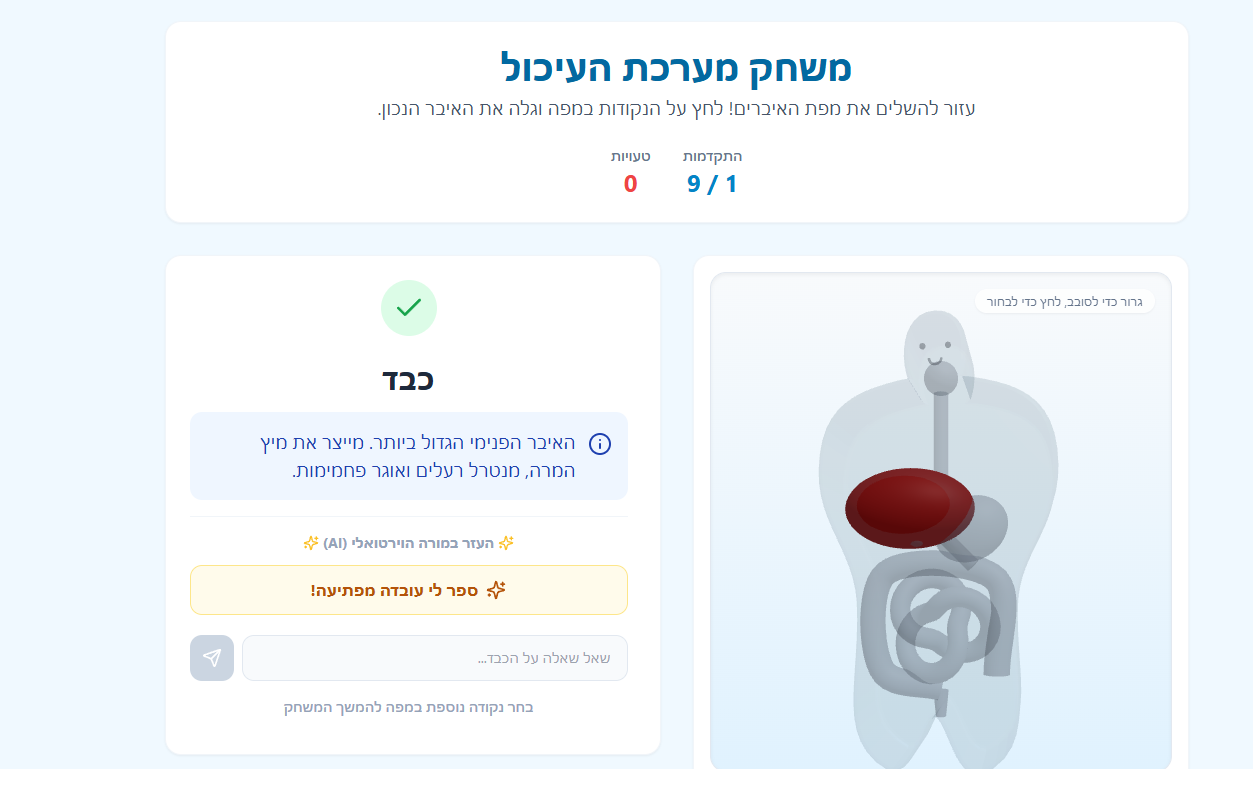 משחק מערכת העיכול 3D 25.2.2026 ביולוגיה • מדע וטכנולוגיה ד • ה • ו • ז • ח 7 0 0 הדמיהתלת מימדעזור להשלים את מפת האיברים! לחץ על הנקודות במפה וגלה את האיבר הנכון. מעבר לקישור