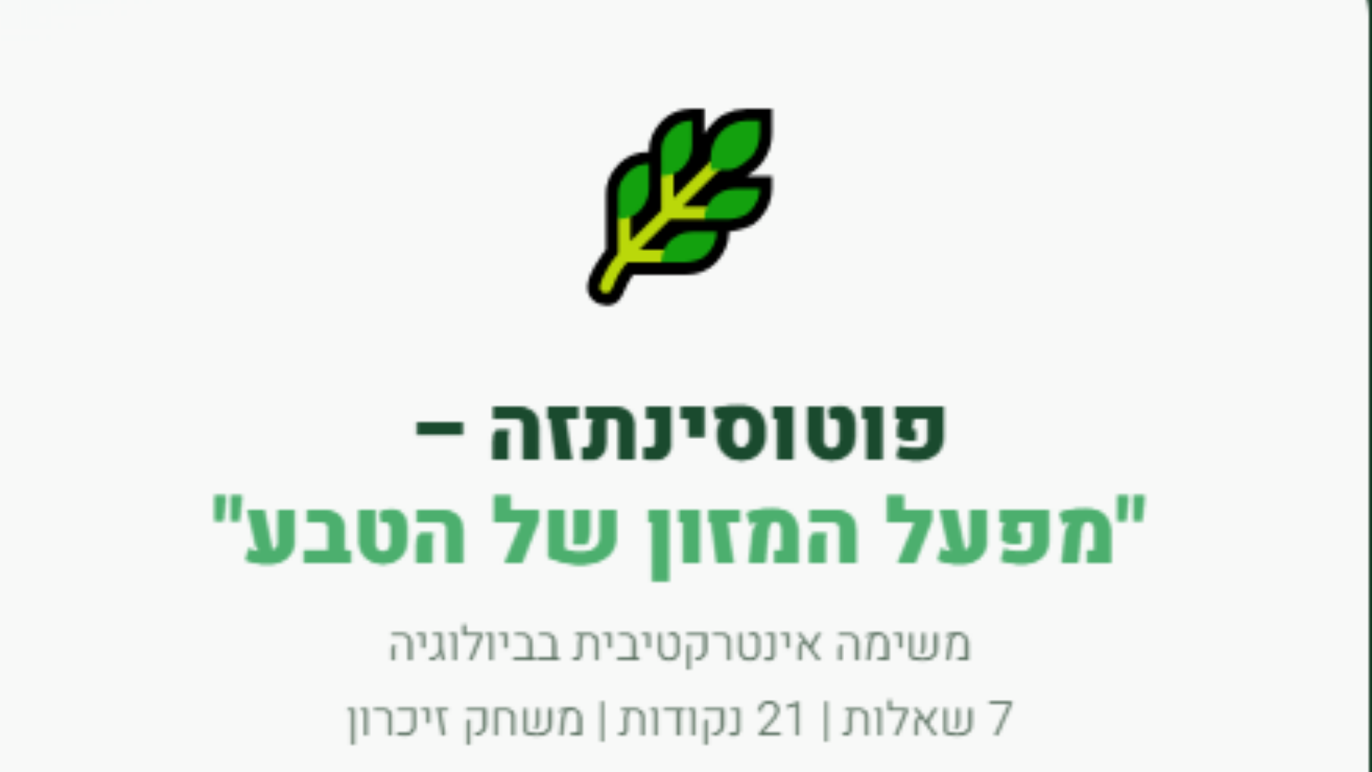 פעילות בנושא פוטוסינטזה