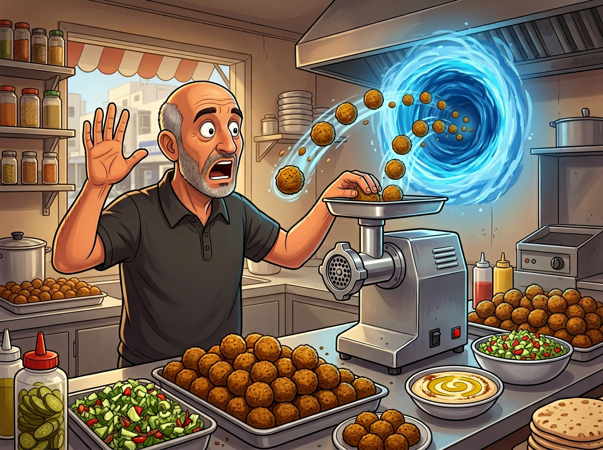 יוֹם שֵׁנִי בַּבֹּקֶר, שְׁכוּנַת הַתִּקְוָה. פָלָאפֶל גַ׳קִי מְקַבֵּל אֶת הַהַזְמָנָה הַגְּדוֹלָה בְּתוֹלְדוֹתָיו: 500 כַּדּוּרֵי פָלָאפֶל לִמְסִבַּת יוֹם הָעַצְמָאוּת שֶׁל בֵּית הַסֵּפֶר הַיְּסוֹדִי ׳אֲלוֹנִים׳. בִּשְׁבִיל לְהָכִין אֶת הַהַזְמָנָה, גַ׳קִי מַחְלִיט לְהִשְׁתַּמֵּשׁ בְּתַבְלִין סוֹדִי שֶׁעָבַר בְּמִשְׁפַּחְתּוֹ בְּמֶשֶׁךְ דּוֹרוֹת. אַךְ כְּשֶׁהוּא מוֹסִיף אֶת הַתַּעֲרוֹבֶת עִם הַתַּבְלִין הַסּוֹדִי לַמַּטְחֵנָה הַחַשְׁמַלִּית, נוֹצָר קֶצֶר עָצוּם. חוֹר תּוֹלַעַת כָּחֹל נִפְעַר בַּמִּטְבָּח וְשׁוֹאֵב אֵלָיו אֶת כָּל כַּדּוּרֵי הַפָלָאפֶל שֶׁגַ׳קִי הֵכִין, יָשָׁר אֶל תּוֹךְ הֶעָבָר! אֲבָל קוֹרֶה דָּבָר מוּזָר: חוֹר הַתּוֹלַעַת דּוֹחֵס אֶת 500 הַכַּדּוּרִים לַחֲמִשָּׁה כַּדּוּרֵי-עַל עֲנָקִיִּים — אֶחָד בְּכָל תְּקוּפָה הִיסְטוֹרִית.