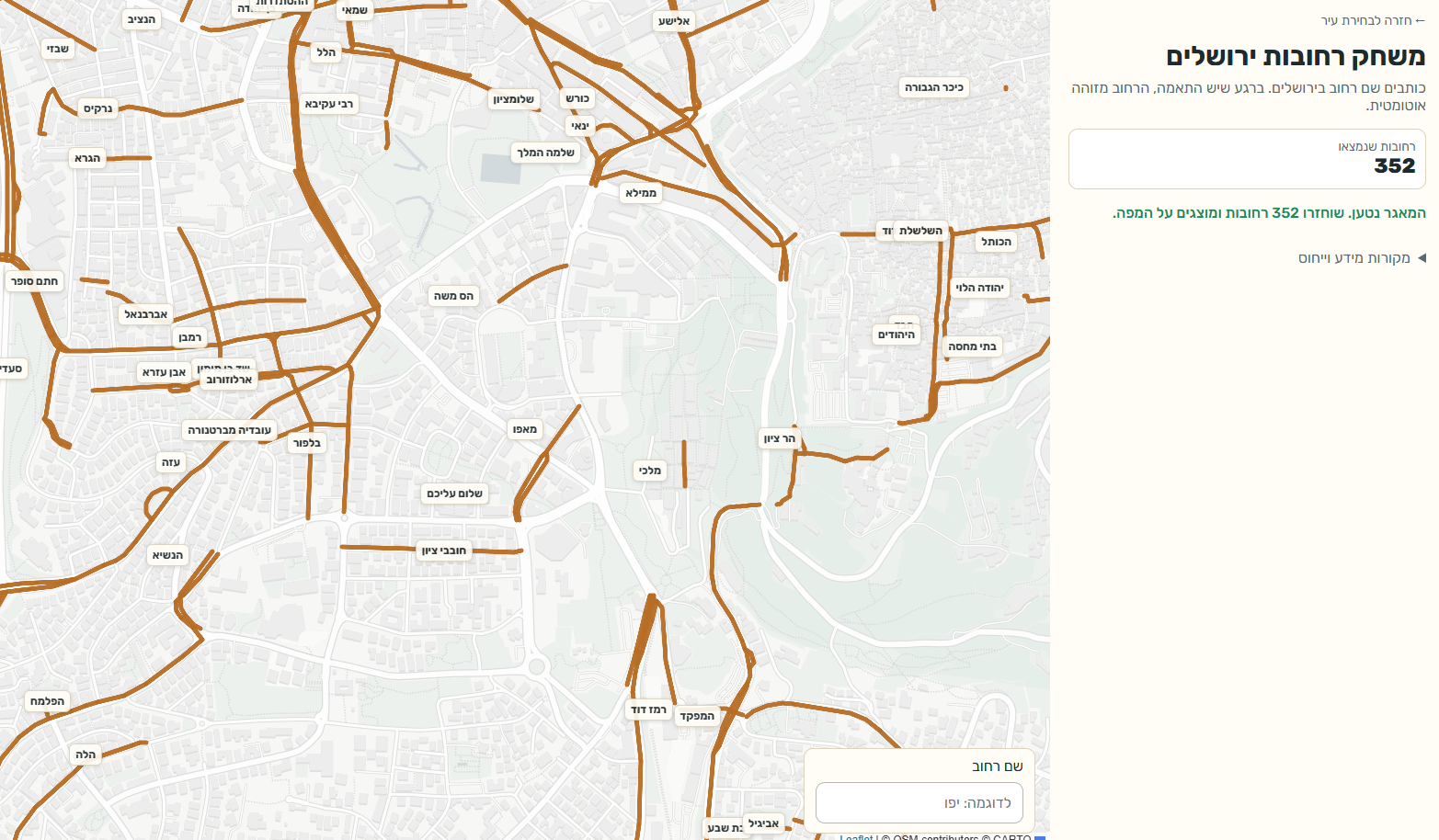 משחק מאתגר - נסו לשלוף כמה שיותר שמות של רחובות בירושלים.