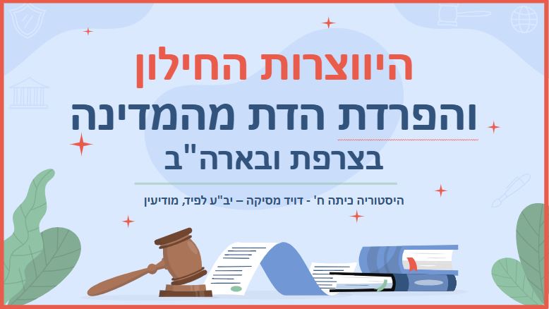 הפרדת ומדינה – חילון בצרפת ובארה"ב 10.9.2025 היסטוריה ח • מורים 31 0 0 תהליכי חילון בחברה המערבית הפרדת ומדינה מעבר לקישור