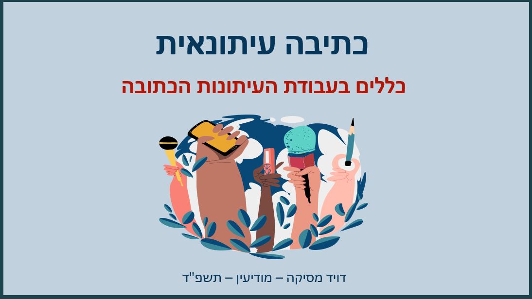 כתיבה עיתונאית 10.9.2025 תקשורת ט • י • יא • יב 32 0 0 כללי עבודה בתחקיר ובכתיבה עיתונאית מעבר לקישור