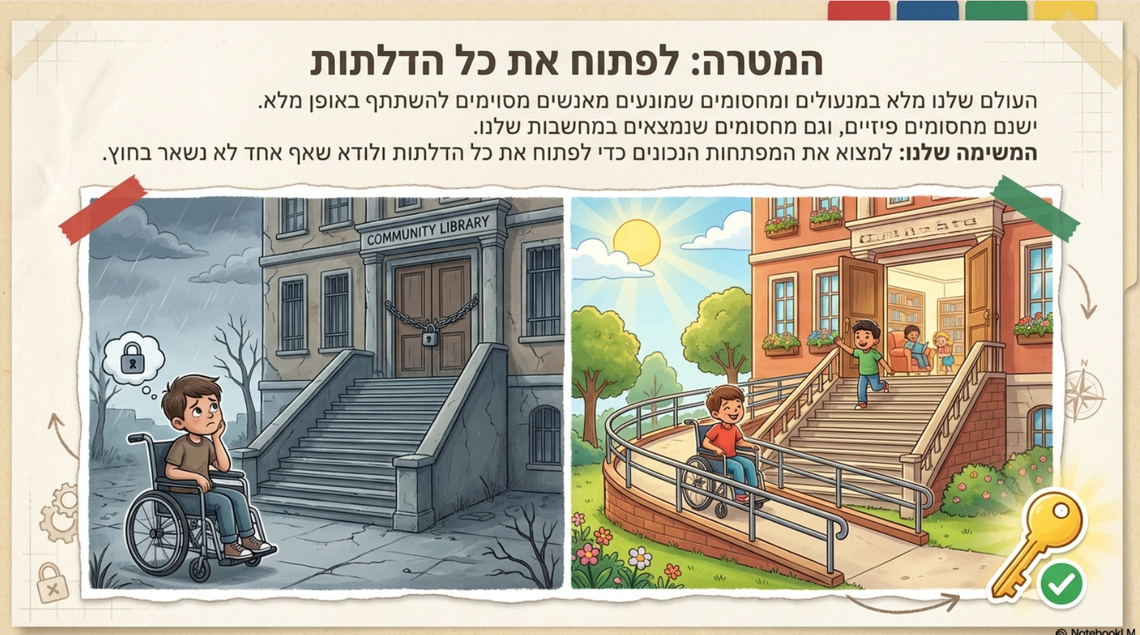 ואוו איזה מצגת מדהימה על הנגשה! הרעיון שבכל שקופית הילדים צריכים לפתור חידה/בעיה עד לפתיחת כל המנעולים מבריק! וגם היופי שבעיצוב מבריק! תודה רבה ! אני לגמרי הולכת ללמד את זה! תודה לך!