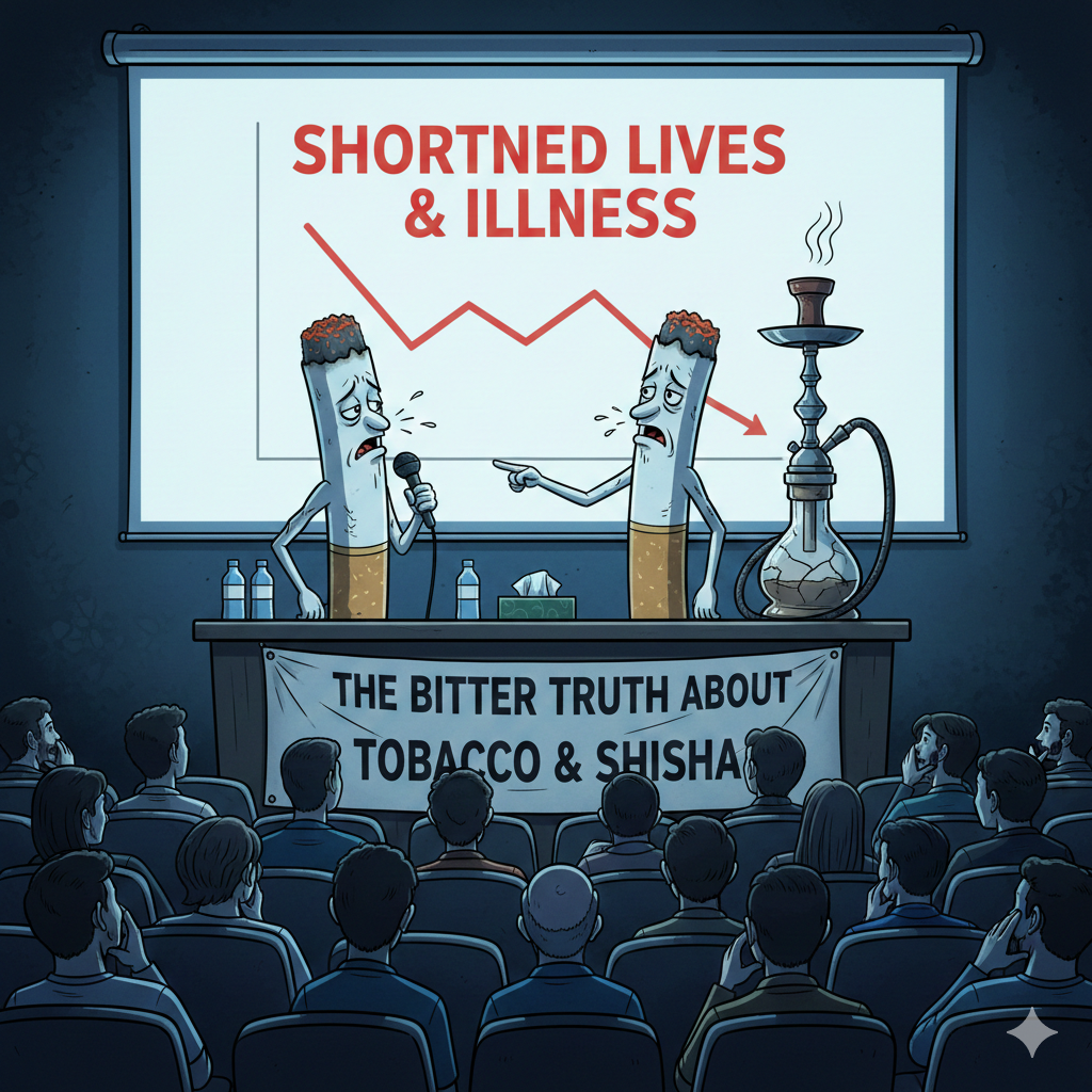 טפטף ופטפט מעבירים לתלמידי התיכון הרצאה בנושא העישון. נותנים לתלמידים מדע על מה העישון עושה להם, וגם נותנים להם ארגז כלים לגמילה