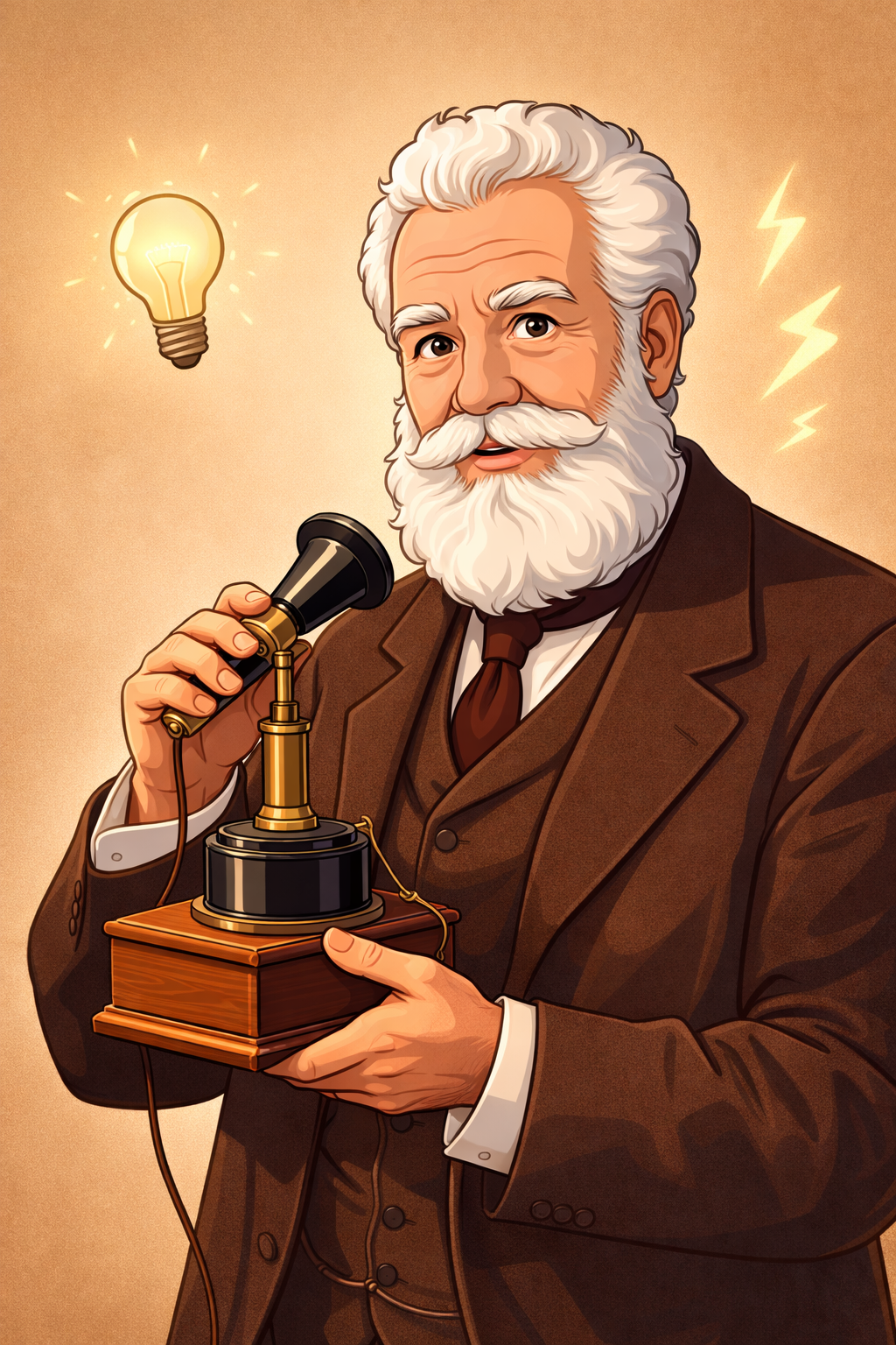 A short talking character video of Alexander Graham Bell was created using the Hedra platform to present a scientific invention in an engaging and accessible way. The content is intended for science, technology, and English lessons for students in grades 5–6 and focuses on listening comprehension, vocabulary, and innovation. The main challenge was keeping the text short while using simple and clear English. The video is expected to help students understand complex ideas more easily through a visual and spoken explanation. Teachers can use the video to open a lesson, practice listening skills, introduce new vocabulary, encourage discussion, and support follow-up activities about inventions and communication.