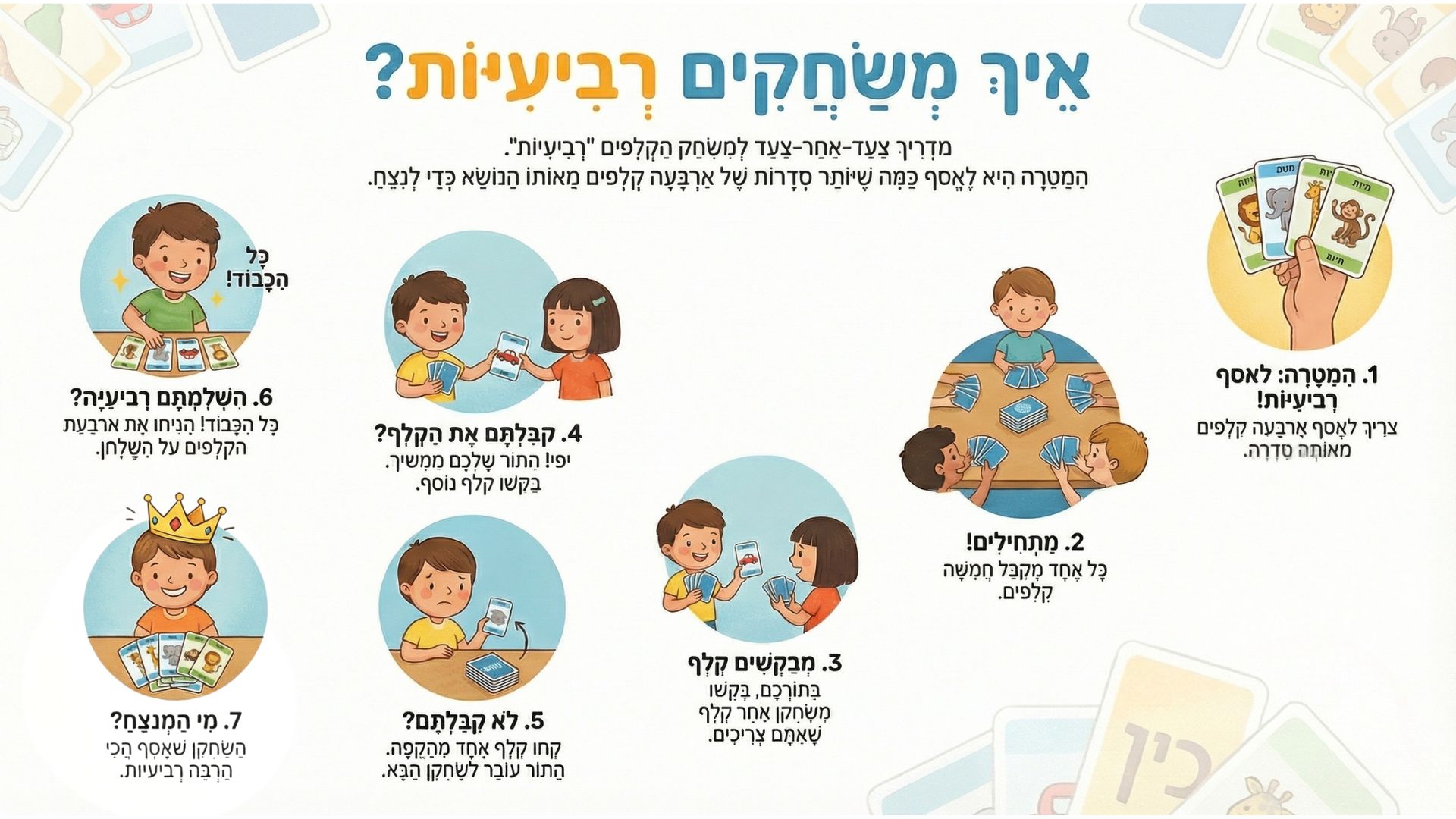 הוראות למשחק רביעיות 24.12.2025 שפה ב 44 3 0 הוראותמשחקפותחים שעררביעיותשפהלנו זה נראה מובן מאליו, אבל יש ילדים שלא יודעים לשחק. הכנתי הוראות פשוטות. מעבר לקישור