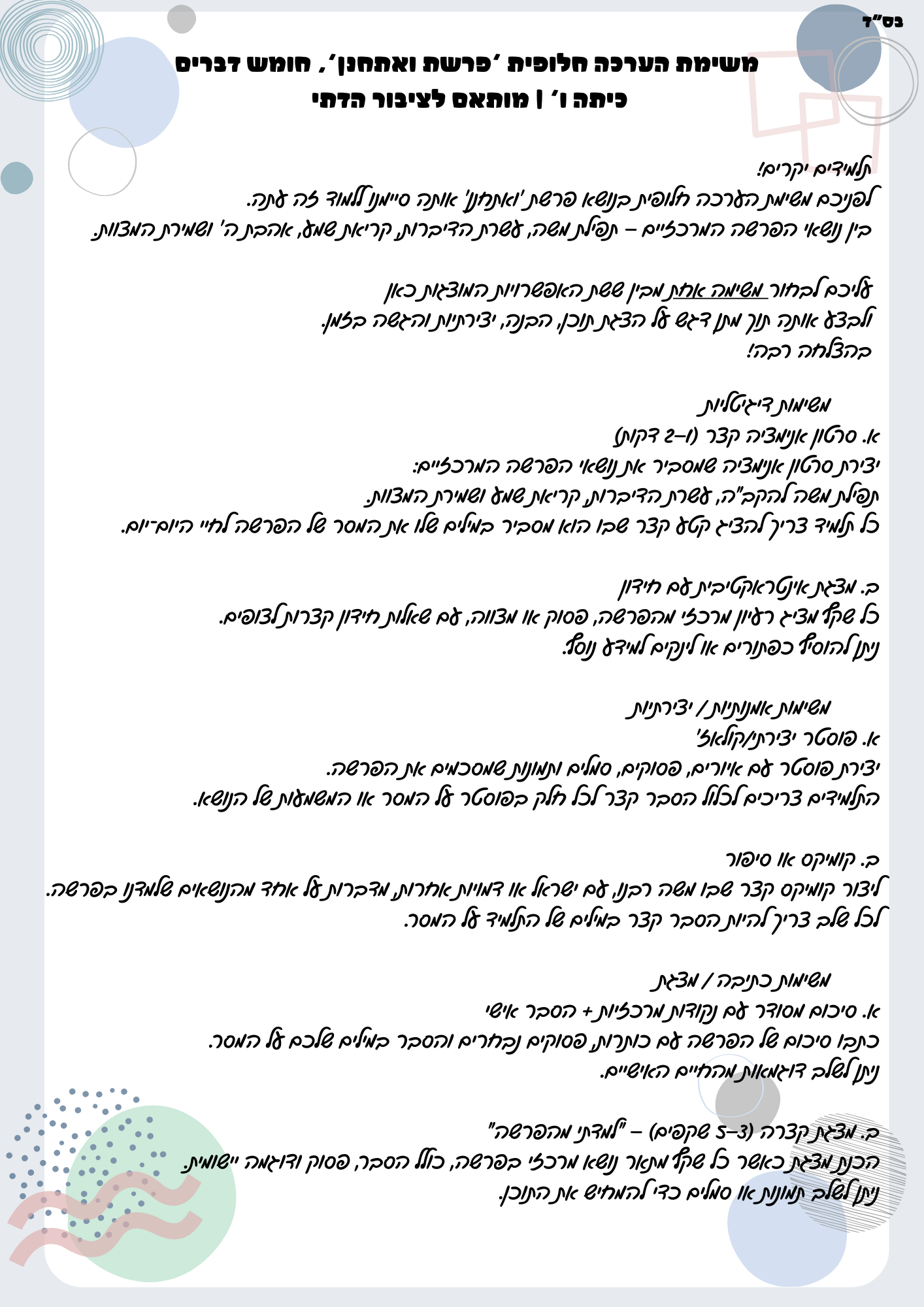 ועכשיו, כל שעליכם לעשות הוא לסיים ללמד את פרשת 'ואתחנן' ולשלוח את התלמידים לבצע את המשימה.