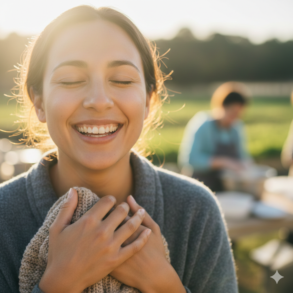 Use Canva\Grok\Gemini to generate an AI picture that shows how a person feels ?when he does\recieves a good deed. which prompt did you use?