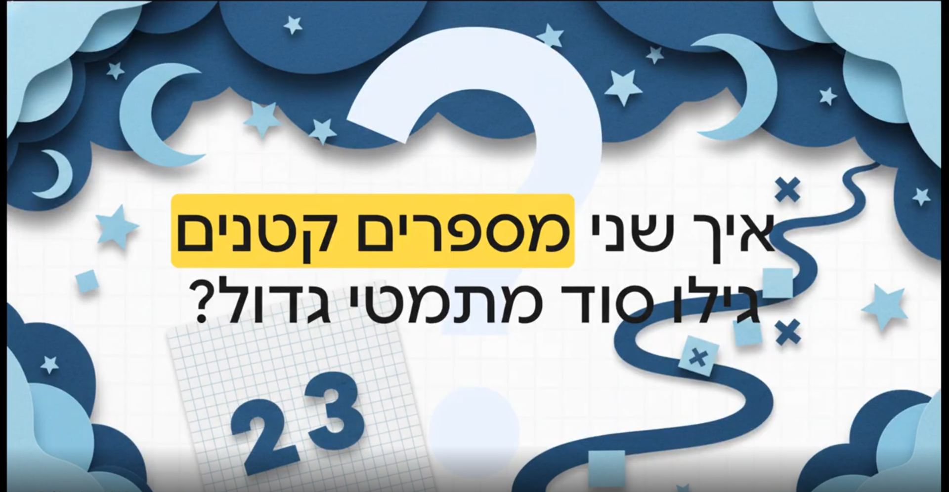 זהו סרטון הסבר לתלמידי כיתה ב בנושא הכפל כפעולת חיבור חוזרת הכולל גם היכרות עם חוק החילוף המדגים כי שתיים כפול שלוש שווה לשלוש כפול שתיים. הסרטון נוצר בנוטבוק ונבחר כפורמט המאפשר המחשה חזותית מדורגת של רעיון מתמטי מופשט באופן המותאם לגיל הצעיר. האתגר המרכזי היה לשמור על דיוק פדגוגי מלא בין הייצוג החזותי לבין פעולת הכפל עצמה. התוצר מיועד לשילוב כפתיח לשיעור כבסיס לדיון או כסיכום למידה