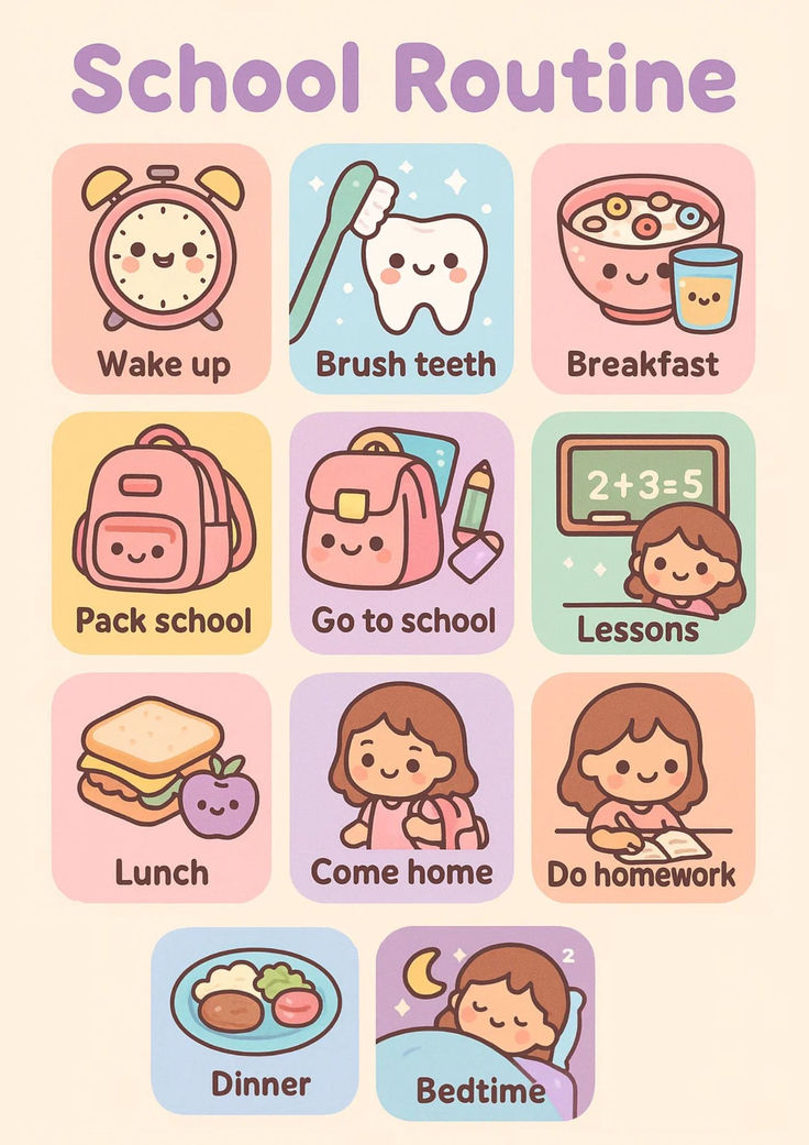 מערך שיעור חווייתי לכתה ו' העוסק בנושא Daily Routine תוך תרגול זמן הווה ממושך. השיעור משלב אסטרטגיות הבנת הנקרא בסיסיות יחד עם אוצר מילים מבנד 1.