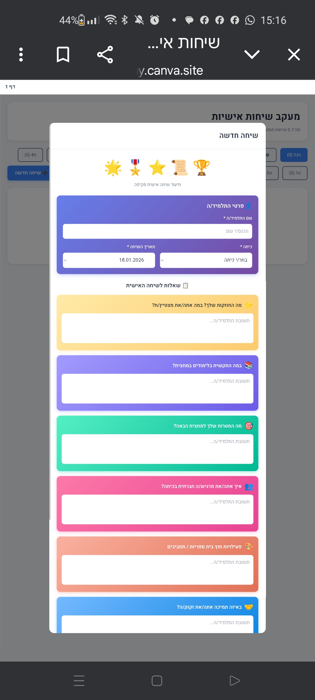 בוט שיחות אישיות 18.1.2026 כישורי חיים ו • ז • ח • ט • י • יא 15 1 0 פותחים שערסיום מחצית זה זמן לשיחות אישיות מעבר לקישור