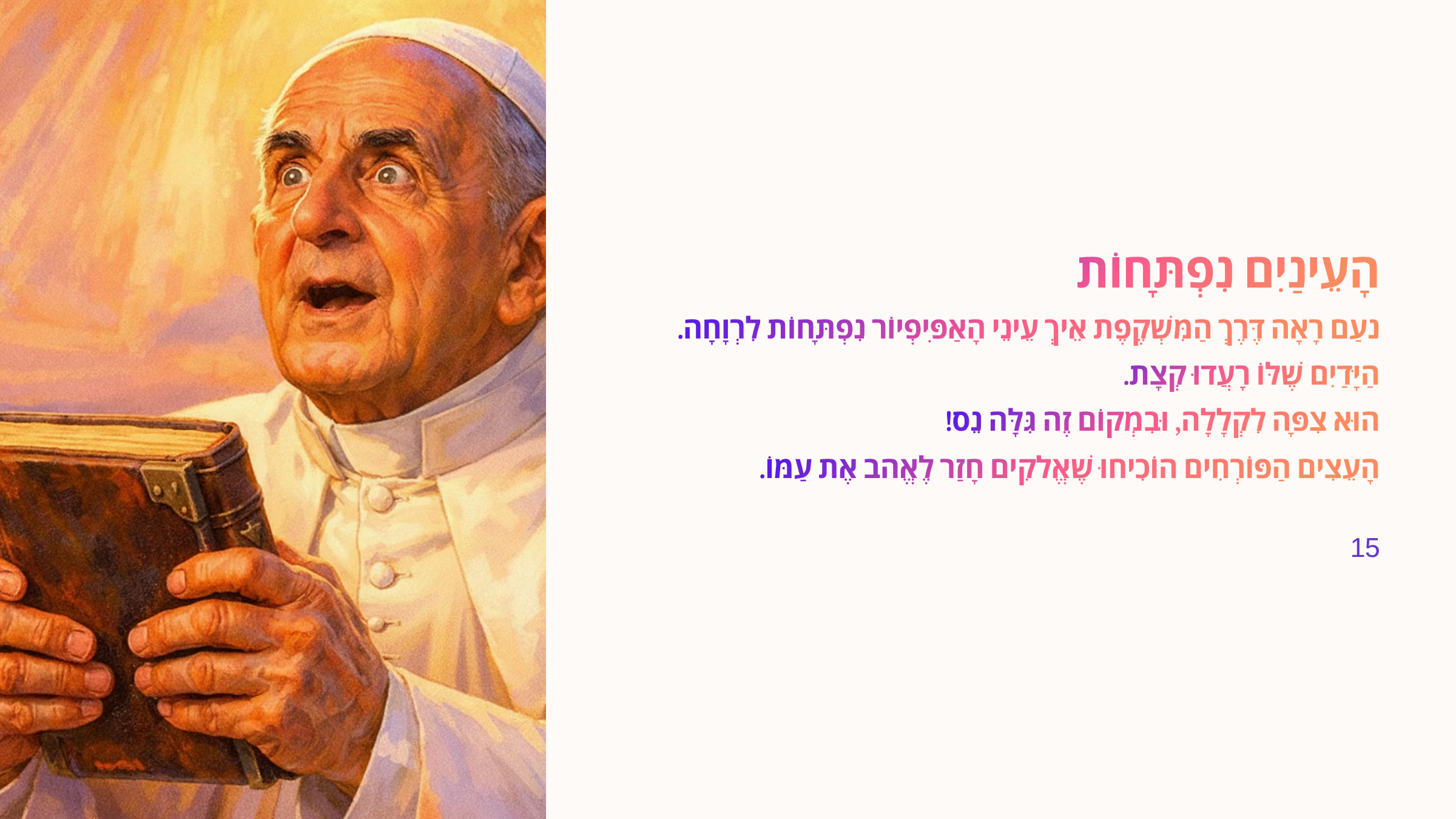 נמצגת – נועם ותמר פותרים תעלומה מרתקת: מדוע שיירה מסתורית של האפיפיור מגיעה להר תבור? בעזרת משקפת אבודה והרבה אומץ, הם מגלים איך העצים הפורחים של ישראל הוכיחו לעולם כולו שאלוקים חידש את בריתו עם עמו – ונבואה עתיקה התגשמה לנגד עיניהם.
