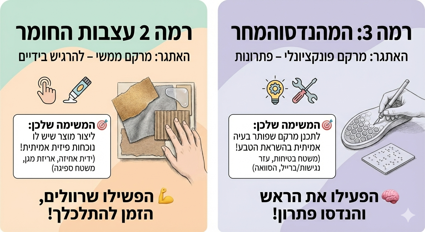 מערך שיעור בנושא מרקם 29.1.2026 אחר • אמנות ותקשורת י 11 0 0 בוחןיסודות העיצובמרקםעבודה בקבוצותפותחים שערתלקיט פרק ב'עם כרטיסיות לשלב היצירה בקבוצות לפי רמות, ובוחן לסיכום, מותאם לבנות כיתה י' במגמת עיצוב גרפי מעבר לקישור