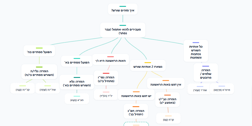 תרשים מציאת שורש וגזרה 5.2.2026 לשון יא 18 2 1 גזרותעבריתפותחים שערשורשיםתרשיםתרשים למציאת שורש וגזרה בעברית. מעבר לקישור
