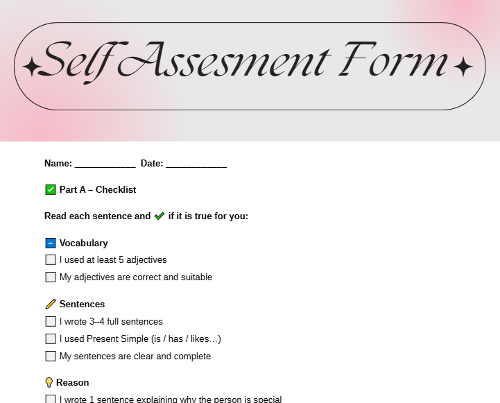 ערכת הערכה חלופית באנגלית – תיאור דמות