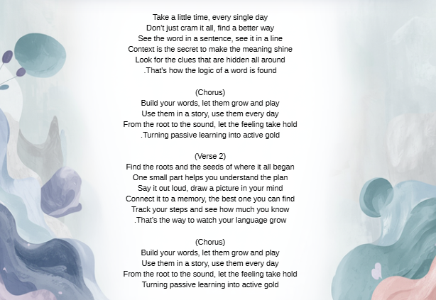 שיר קצר באנגלית על הדרך ללמידת אוצר מילים