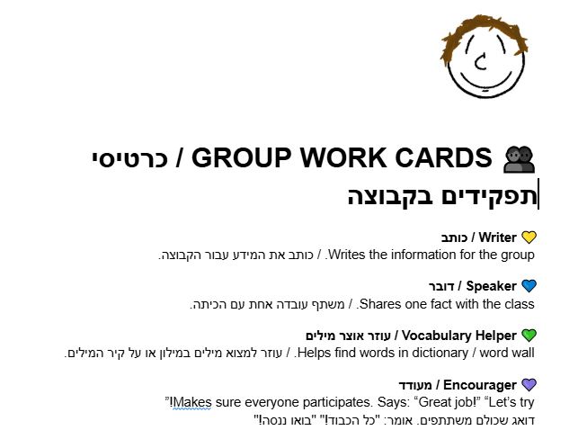 @Merav Isaacson פעילה לפני 3 שבועות 68 👁️ צפיות 0 ❤ לבבות 0 💬 תגובות 2 📝 פוסטים הפוסטים שלי האוספים שלי פרופיל חברים פעילות קבוצות כל הפוסטים שהעלית: 30 בנוב 2025 אנגלית Module C Writing 30 בנוב 2025 אנגלית Future Simple 16 בנוב 2025 אנגלית "Writing 7th grade Mixed abilities" About Myself
