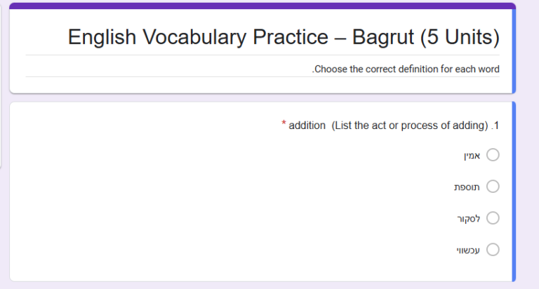 בוחן אוצר מילים לבגרות באנגלית