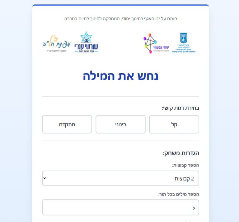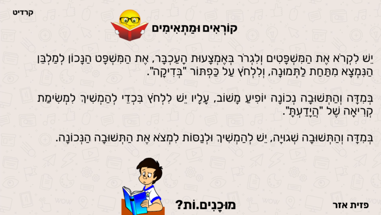 משחק שאלות מילוליות לתרגול עצמאי
